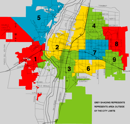 Who is Your City Councilor and how do you Contact them? Below is a Map of Albuquerque. Locate the area where your home is, then click on the corresponding number. Each number is the given number for that district, and when you click on your district's number, you will be linked to the City's website where your city councilor's name and contact information will appear.